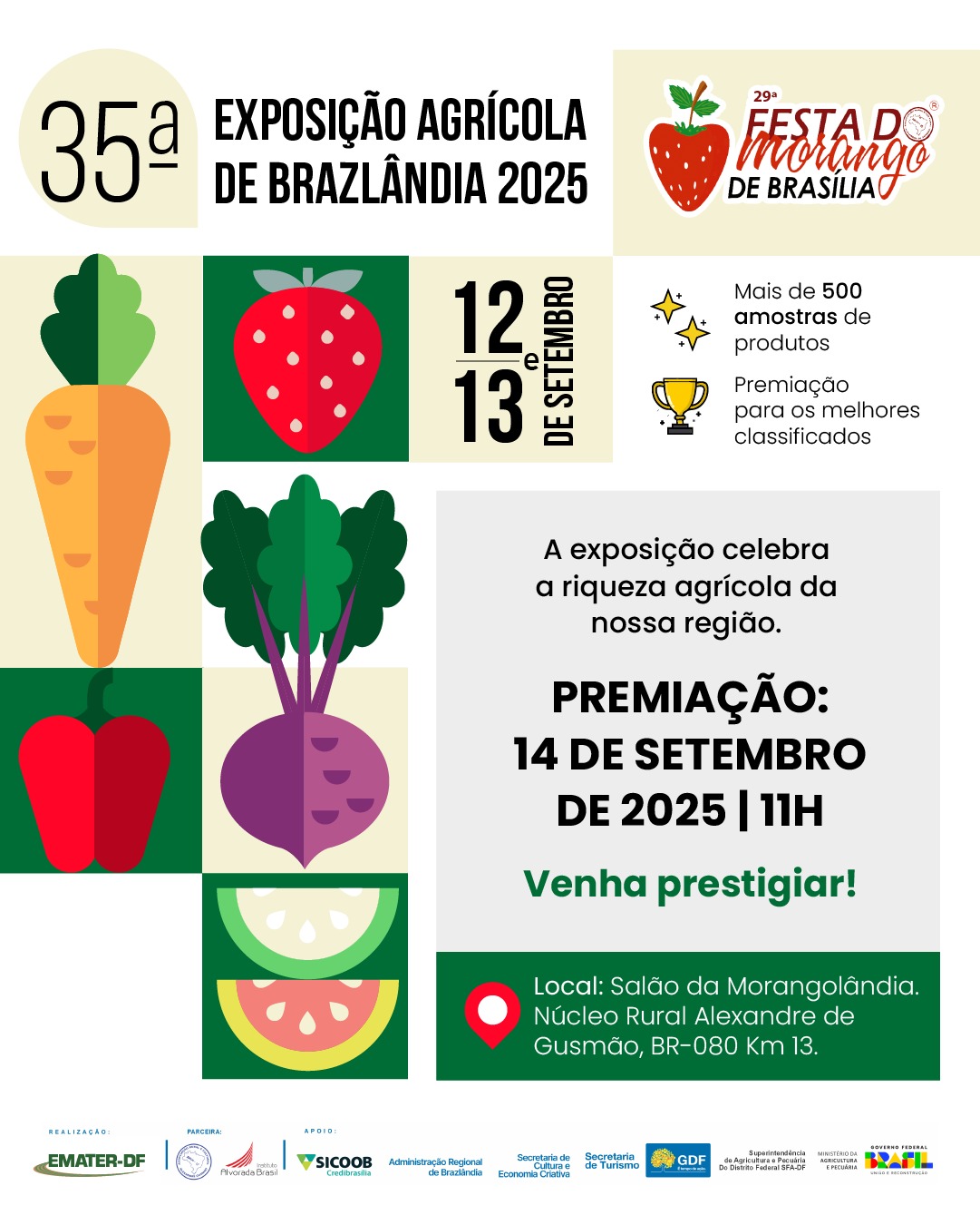 Apoio: Sicoob, Administração Regional de Brazlândia, Secretaria de Cultura e Economia Criativa do Distrito Federal, Secretaria de Turismo, GDF, Superintendência de Agricultura e Pecuária do Distrito Federal e Ministério da Agricultura e Pecuária.